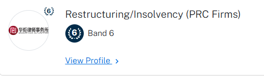 公司商事领域一直都是钱伯斯榜单中竞争最激烈的领域之一,也是钱伯斯大中华区指南唯一按照省/直辖市细分的榜单。华炬能够在该领域中蝉联Band1称号,足以展示出律所在山西律师行业中具备的实力。在此基础上,凭借着律所在破产重组领域的深耕,也连续登上全国榜单,华炬将在该专业领域中更上一层楼。