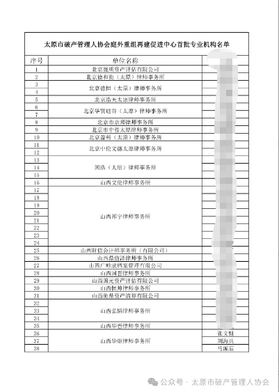 值得一提的是,凭借在庭外重组、破产重整等领域的丰富经验与优异业绩,本所三位律师张文魁、刘海兵、马源辰成功入选太原市破产管理人协会庭外重组再建促进中心首批专业机构入库名单。这一荣誉既是对本所破产法律服务专业性的权威认证,也标志着团队正式跻身区域破产服务核心力量,将在庭外重组制度落地、困境企业再建等领域发挥更关键的专业作用,为市场主体退出与拯救机制的市场化法治化贡献力量。