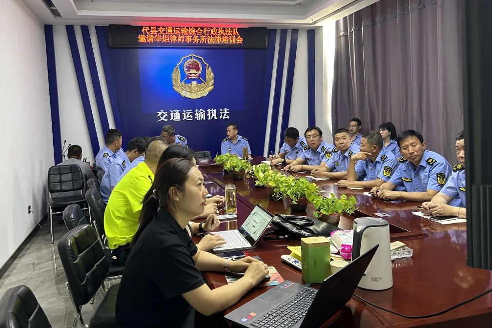为推进新时期依法行政、法治政府建设,进一步提升行政机关执法(监督)队伍能力素质,顺利完成提升行政执法质量三年行动计划(2023-2025年)工作任务,2024年6月17日,华炬律所刘贵燕律师、袁彩萍律师应代县交通运输综合行政执法队的邀请进行专题培训。